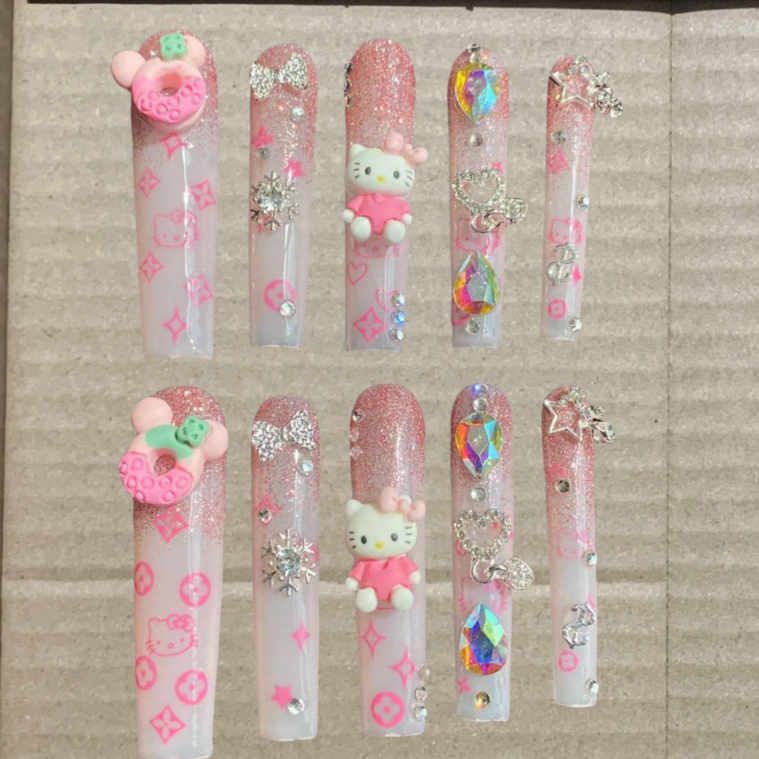 6 Colors Hello Kitty Wenston 5D Handmade Press On Nails